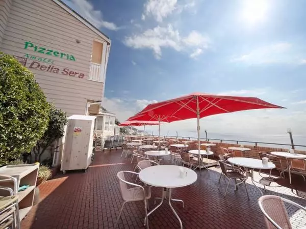 人気店がひしめく七里ヶ浜エリアで屈指のイタリア料理店【Amalfi DELLASERA】。七里ヶ浜に面した高台の上に佇むレストランから望む美しい景観は、南イタリア・アマルフィ海岸さながらです。オープンテラス席から見渡せるのは180度オーシャンビューの眩いパノラマ。左は葉山海岸から三崎の灯台まで、正面には大島、右は江の島、さらに天気の良い日には富士山と、雄大な景観を満喫できます。