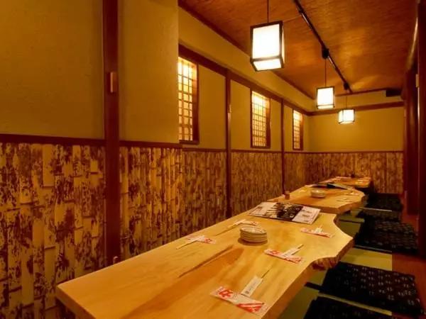 テーブル席や座敷席、半個室や完全個室など、さまざまなタイプの部屋を用意しています。最大は15名まで収容OK。和のイメージを巧みに活かした内装は、心落ち着けるモダンな空間を形作っています。宴会には食べ放題&飲み放題コースが人気。親しい仲間で心置きなく楽しい時間が過ごせるはずです。