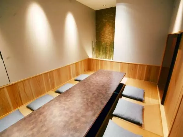 掘りごたつ式からクッションフラットの個室、座敷までの多彩な個室が2名~30名といった人数に応じて選べます。どのスペースも、デザイナーズマンションのリビングを意識したシンプルモダンな上質さ。温かな照明が、洗練されたなかにもホッとくつろげる空間を作り上げています。