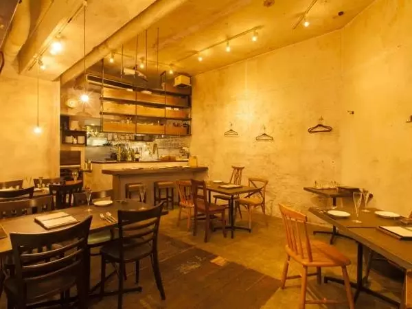 女性デザイナーが担当した白を基調とした店内に並ぶのは、アンティーク調のテーブルや椅子。さりげなく飾られた年代物の調度品も魅力ある空間を演出しています。フランスやイタリア産を中心とした豊富なワインをお供に、大勢で楽しむのに最適。みんなで公園を満喫したら、レッツパーティ!