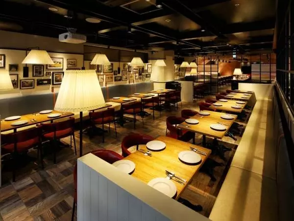 異なる空間を演出する広々とした店内に並ぶのは、片側がベンチシートのテーブル席。