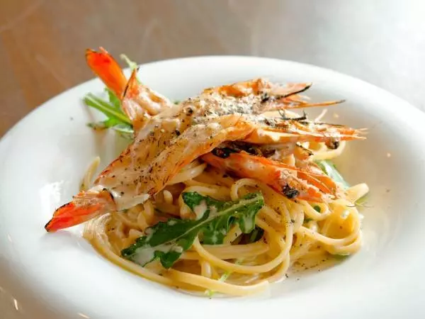 白ワインソースが素材の旨みを引き出す『天使海老のゴルゴンゾーラクリームリングイネ』