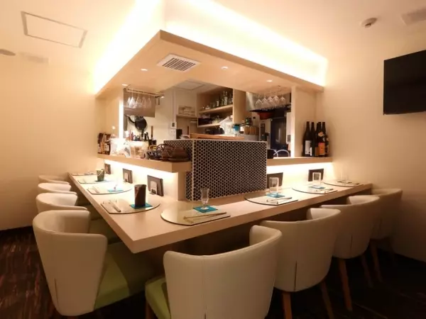 白を基調とした店内は、オープンキッチンのカウンター8~9席のみ。小ぢんまりとした空間は気さくな雰囲気で、1人でも気兼ねなく訪ねられます。もちろん、大人のデートにも最適。オススメの焼酎や日本酒を楽しむ前に、まずはサッポロビール「赤星」で乾杯したいものです。