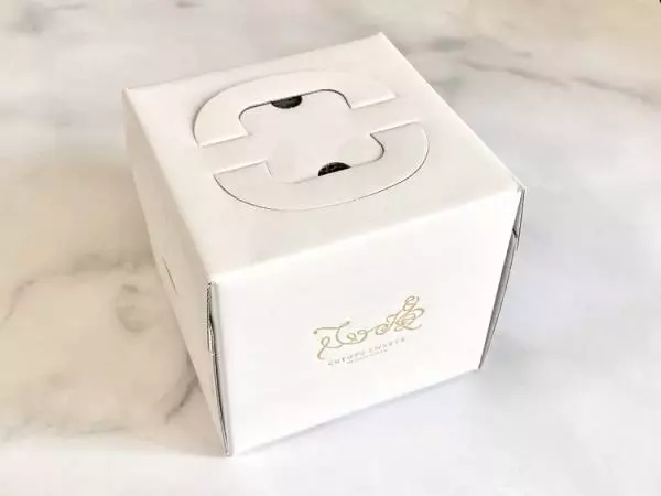 今回お取り寄せした『桜好きさんのための さくらちーずたると』は、ゴールド箔押しのロゴがおしゃれな、綺麗な白い箱に入って手元に届きました。