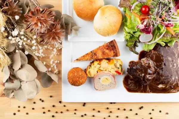 テラスでランチをいただくなら、フレンチコースを一皿にまとめた『フレンチプレート』がオススメ。シェフ手づくりのオードブル3種に、サラダやスープもついてヘルシーに。メインには、ハンバーグorお肉orお魚からお好きな料理が選べます。カフェ利用なら、『フレンチトーストプレート』や『デザートプレート』も。