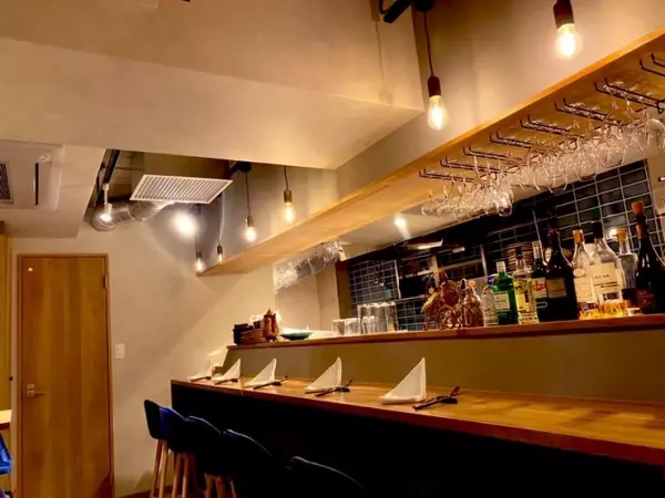 全12席の小さなビストロは、まさに代々木公園近くの隠れ家。シェフとゲストの距離の近さも心地よく、どこかホッとする温かなムードに包まれています。カップルはもちろん、ひとりでも気軽に立ち寄れるのも魅力。メニューに合わせたソムリエ厳選ワインとともに、ゆったりとしたひとときを過ごしてみては。