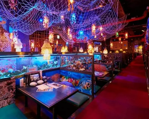 ブルーを基調にしたライティングが幻想的。まるで海底にいるかのよう