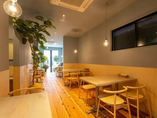 木の温もりを活かした店内はカジュアルな雰囲気。初めての来店でも気兼ねなく、くつろぐことができます。ゆったりと配されたテーブル席は2名席と4名席がメイン。カップルでもグループでも会話が弾むこと間違いナシ!世界各国のワインはもちろん、クラフトビールは青もみじの季節に最適です。