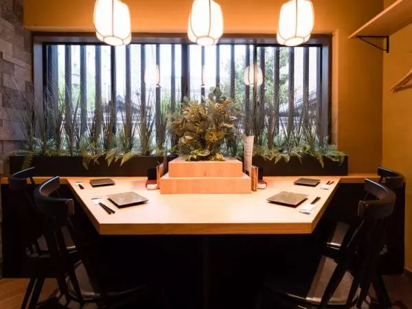 広々とした店内は、和風のテイストを大切にした落ち着いた空間。足が伸ばせる掘りごたつ式の座敷をはじめ、スタイリッシュなカウンター席、プライベート感満載の個室など、人数や利用シーンに合わせて選ぶことができます。『獺祭』などの人気酒も独自ルートから仕入れるなど、アルコール類も充実。日本酒はもちろん、国産ウイスキーやシャンパン、果実酒など、多彩なお酒が楽しめます。