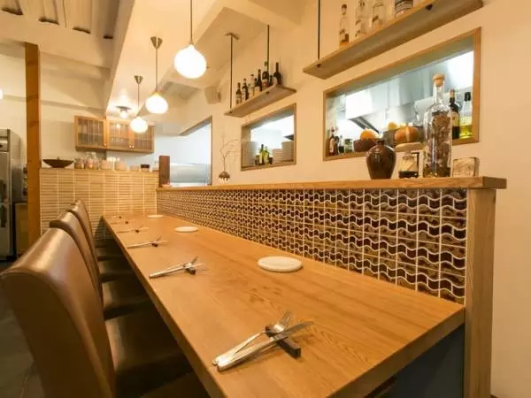 白壁と木の温もりが調和した心地よい空間に設置されたのは、合計14名までが着席できるカウンター席とテーブル席。窓から入ったゆるやかな日差しも心地いい、心安らぐ空間です。ワインはもちろんですが、メニューにぴったりの日本酒が豊富なのも魅力。イタリアンとの思わぬコラボが楽しめます。