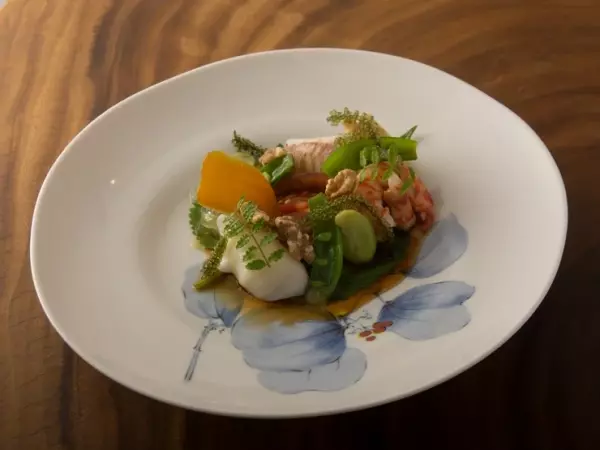 旬の魚介と野菜による前菜的な『海鮮のサラダ風仕立て』※コースの一品