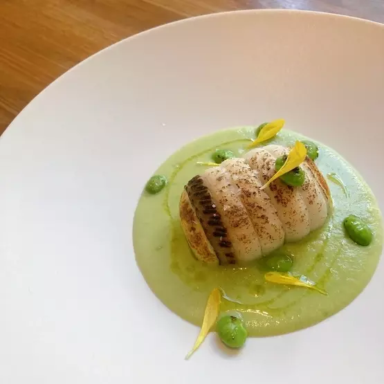 『太刀魚と帆立のムースのヴァプール「蒸し」枝豆のソース』