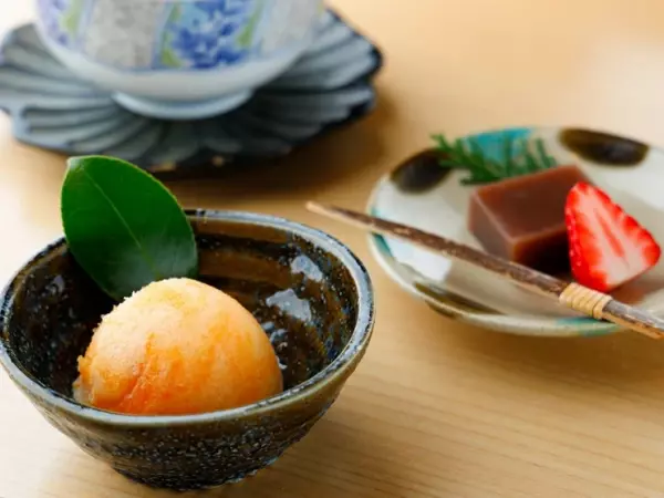デザート『紅茶の外郎』と『みかんとヨーグルトのシャーベット』