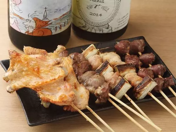 炭火焼でジューシーに焼き上げる焼鳥と自然派ワインを一緒に