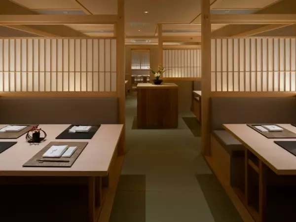 THE JUNEI HOTEL KYOTOの1階にあり、料亭をイメージした店内には10名までの完全個室を1室、2名~6名までの半個室6室を用意。「粋」を感じる和モダンな雰囲気の中で、極上の肉割烹料理を堪能することができます。定番銘柄や人気酒までそろう、ワインや日本酒のラインナップにも自信あり。