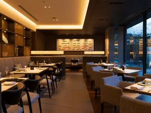 ホテルオークラ1階の庭園に面した店内は、気品あふれるラグジュアリーな空間。テーブル席をはじめ、「サロン」と呼ばれるプライベートルームも用意しています。西陣織のプレイスマットに器、調度品などは京都の工芸職人の作品。美食のみならず、心を満たす至福の時間を描き出します