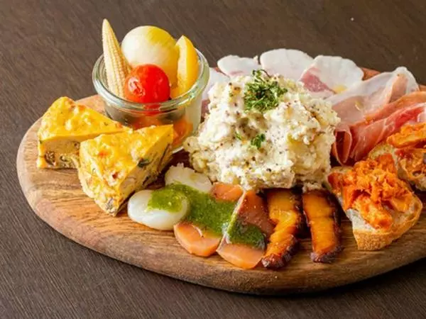 生ハム、マリネ、ピクルス、カルパッチョなどの『前菜盛り合わせ』