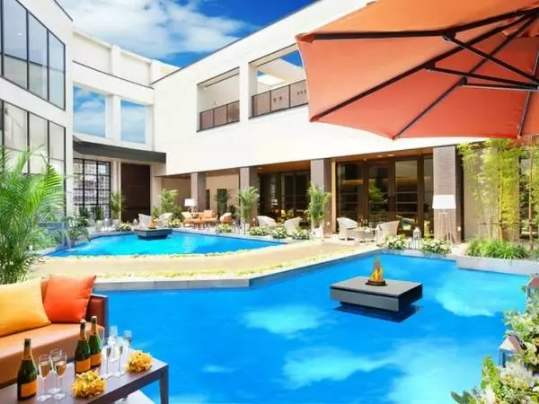 JR小倉駅から車で約5分に位置する、創業70年以上の老舗ホテル。北九州で「料理がおいしいホテル」として評判の【松柏園ホテルヴィラルーチェ】で、エスコフィエの称号を最年少で授与されたグランシェフ・戸川健氏による、絶品フレンチがいただけます。プールとテラスを望む空間で、リゾート感あふれるひと時を。ディナータイムにはプール内の「かがり火」が揺らめき、幻想的な雰囲気に包まれます。