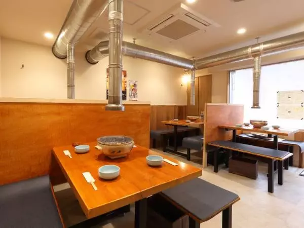 スペースに余裕を持たせた店内には、広々としたテーブル席に加え、横に並んで楽しい時間が過ごせるカウンター席も設置。それぞれの卓上には、焼き台となる水七輪が置かれています。炭の下には水が入っているので、火が柔らかくなり煙も軽減。炭も長持ちするものを厳選しているため、長時間の宴会で安心して利用できると好評です。思い思いのペースで、おいしい肉と自慢のお酒をどうぞ。