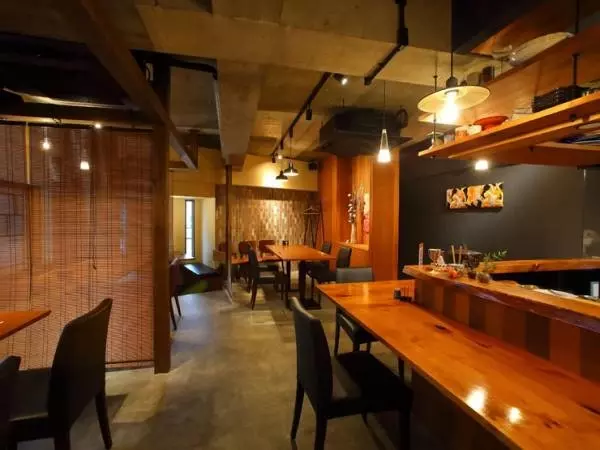 「和モダン」をコンセプトにした、カジュアルでオシャレな店内。その外観からも、居心地の良さを感じさせる雰囲気が漂っています。木材やレンガを効果的に使用することで、モダンさと清潔感を創出。地酒やワインをはじめ、料理と合わせるドリンクメニューも充実しています。おいしい料理を前に、家族や仲間との会話も自然と弾むことでしょう。