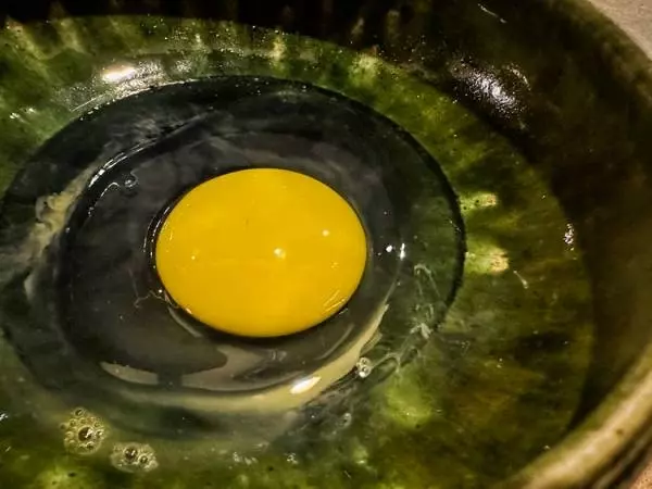 こうなると最後は究極のたまごかけご飯、いわゆるTKGですね。鶏すきの残ったたまごにもう一つ新しいたまごを加え、そこに炊き立てのご飯を入れてもらいます。土鍋で炊いたコシヒカリがしっかり米を主張します。この一体感こそまさにこの地ならではのものなんでしょうね。