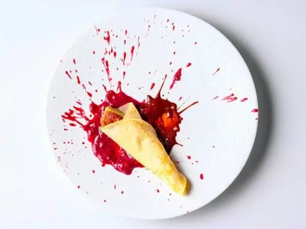 【Chanfe Tokyo/シャンフェ東京】が誇る、フレンチとイタリアンのスペシャリスト・シェフの武谷さん自信作。クレープに包んだフランス産フォアグラを、味わい深いソースに付けながらいただきます。