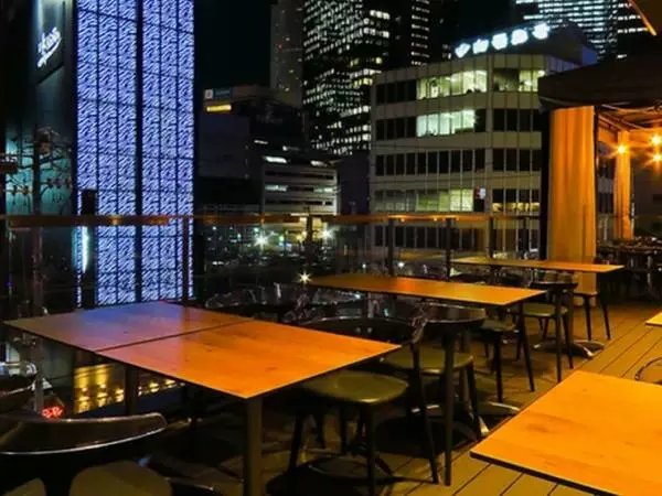 夜風が気持ちいい、開放感抜群のビアガーデンテラス席で乾杯!