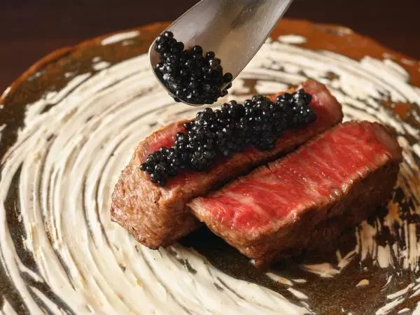 『雲丹ドッグ』が付いた人気のコースを個室で楽しむこともできます。『キャビアと仙台牛フィレの炭火焼』や『近江牛ざぶとん』など、黒毛和牛の多彩な部位を旬の魚介類を融合させた唯一無二の寿司で味わえます。