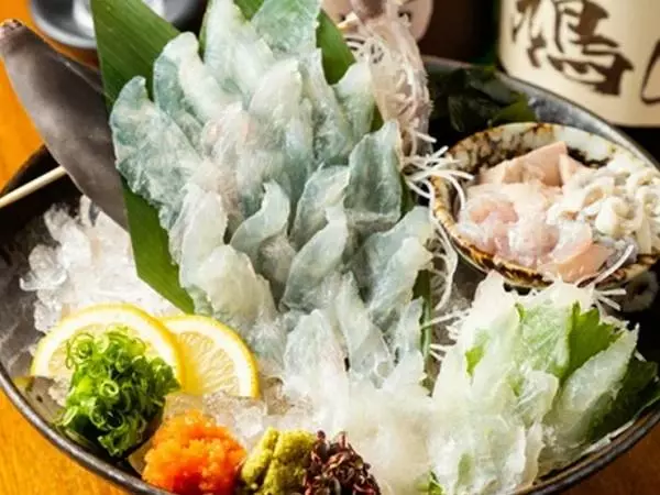 注文ごとに店内の生け簀から水揚げする、鮮度抜群の『かわはぎ活き造り』
