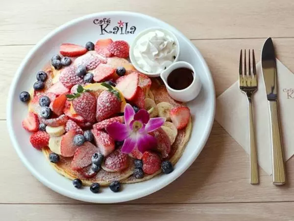 フルーツたっぷりのパンケーキを現地の雰囲気で!