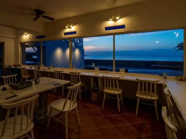 美しい海が一望できる店内は全50席のキャパシティで、開放感たっぷりのテラス席もあり。子連れの家族旅行でも利用しやすい雰囲気です。オリオンビールや泡盛とともに、沖縄食材をじっくり堪能できるのが魅力。隣接する宿泊施設ではBBQプラン等も用意しているので気になる人はぜひチェックを。