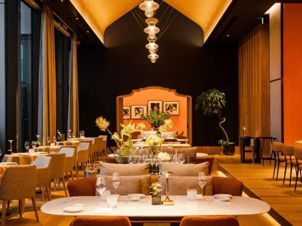 こちらには、ぜひドレスアップして訪れて。大きな窓から差し込むのは、夕暮れ時のドラマティックな光。そして、ブルガリのテーマカラーである、「サフランカラー」に彩られた非日常感溢れるインテリアは、あなたを美しく魅せてくれること間違いなし。テラスからは東京の絶景が。食事の前に、テラスでフランチャコルタを一杯いただくのも一興でしょう。宝石のように煌めく夜景を眺めて喉を潤したら、いよいよディナーの始まりです。