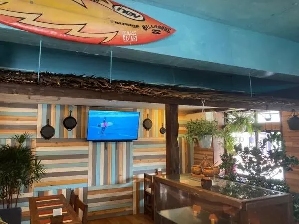 お店にはテラス席も完備。心地よい風に吹かれながら、バリやタイの料理を楽しむこともできます。カラフルな店内にはサーフボードがディスプレイされるなど雰囲気抜群。ランチやディナーはもちろん、ビーチの行き帰りにフラリと立ち寄れるリラックスしたムードが魅力です。