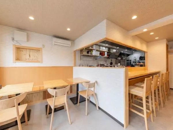 店内はカウンター席とテーブル席を用意。席間が広く取られているので、ゆったりと食事できるようになっています。店舗裏に駐車スペースがあるので、車でのアクセスが可能なのもうれしいところ。2人で、グループで、どんなスタイルでも使い勝手のいい頼れるお店です。