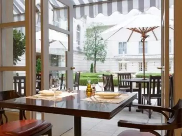 街の喧騒を感じさせない中庭のテラス席。このプライベート感も魅力