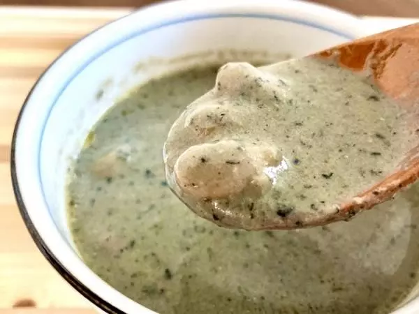 黒い見た目が目をひくスープです。ゴロっとしたミヤギシロメ大豆と黒ゴマ、すりごま、とサイズの違う素材が合わさった食感を楽しめます。中でも大粒のミヤギシロメ大豆はふっくらと甘さがあり、食べ応えのある一品となっています。