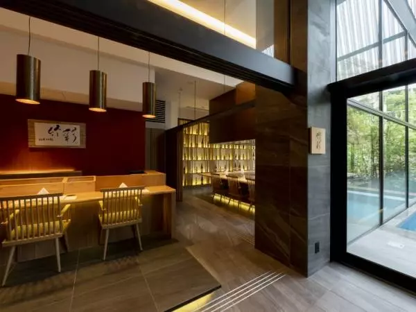 ガーデンテラス福岡ホテル&リゾートの1階にある【鉄板焼&鮨ダイニング福岡伊都竹彩】。鮮やかなシェフの技を見ることのできるカウンター席など、明るい店内には光があふれています。