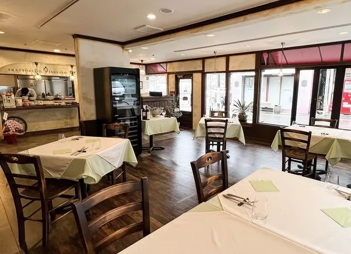 軽井沢本通りからショー通りに入り、軽井沢会テニスコートの手前、赤いターポリンが目印のイタリアン。イタリアのトラットリアをイメージした開放的な空間に、テーブル席が並びます。クラシカルな雰囲気が漂うゆったりとした雰囲気の中、おいしい食事が楽しめます。