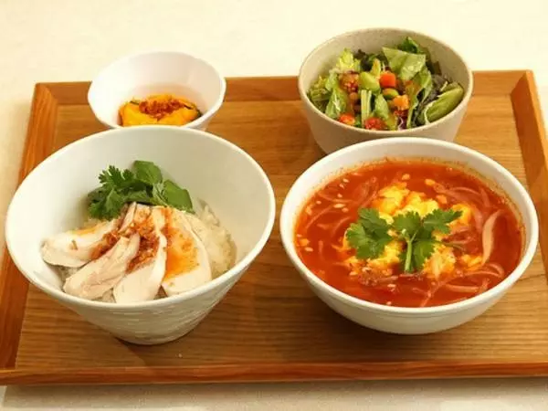 『カオマンガイと卵とトマトのフォー』などアジア各国の料理が定食スタイルで楽しめる