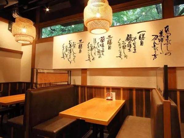 名古屋城正門側にある「金シャチ横丁」内の人気店。蒸さずに強めの遠火で焼き上げる『ひつまぶし』が、気軽にいただけます。鰻の香ばしい香りに誘われて店に入ると、目の前に広がるのは和モダンにコーディネートされたシャレた空間。テーブル席とカウンター席があり、お一人様でもゆったり寛ぎながら名古屋名物が堪能できます。