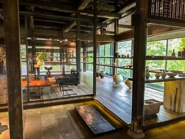 「SHIGUCHI」のオーナーはイギリス生まれのショウヤ・グリッグさん。名宿「坐忘林」を立ち上げた一人として有名ですが、若いころはパンクバンドで活躍した経験もあるというアーティスト。ここは彼の作品を中心に彼が収集した絵画や陶器、古美術品などが展示された森の中の芸術空間になっています。