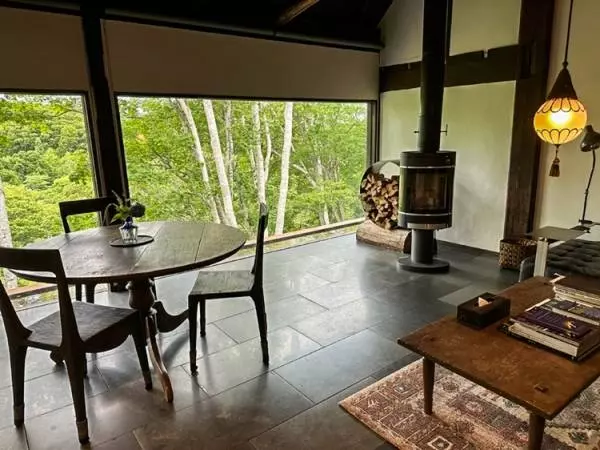 移築された古民家3棟に5つの宿泊施設が用意され、それぞれ地、水、火、風、空と名前が付けられています。ギャラリー・ステイを謳うだけあって、森のなかの美術館に滞在する感覚です。