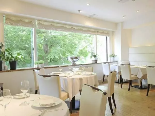 窓から降り注ぐ光が映える店内は白をベースにつくられ、スペシャル感たっぷり。店内には2名から10名まで対応可能な個室も完備。窓からは緑も見られるなど、洗練されたスタッフのサービスとあいまって、極上な時間を過ごすのにふさわしい空間になっています。