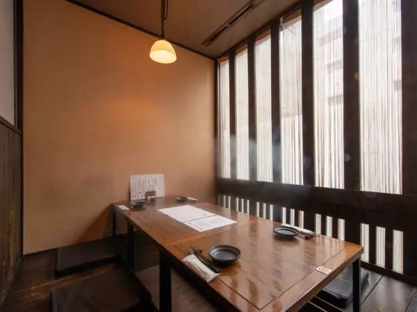 店頭に吊られている店名入りの提灯が目印。雰囲気抜群のエントランスから足を踏み入れれば、モダンなセンスで仕上げられた空間が広がっています。店内には2人用のテーブル席のほか、グループで利用したい座敷席も完備。じっくりもよし、わいわいもよし、どちらの楽しみ方もウェルカムです。