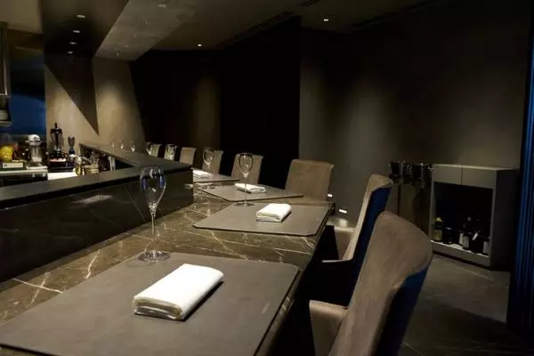 実際にシェフが訪問して信頼関係を築いた生産者から届く極上の食材は、鹿なら一頭買いで、無駄なく使い切ります。店内はYouTubeのクールな世界観そのままの、グレーを基調とした落ち着いた雰囲気。大理石のテーブルが厨房を取り囲むカウンターはシェフの手元も見られる特等席になっています。