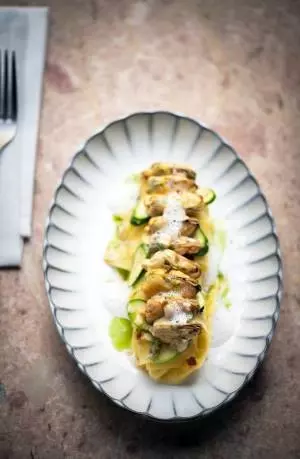 『パッパルデッレ、ゼーランド産ムール貝、ンドゥーヤ、ライム』