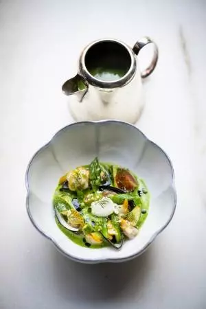 『グリーン・ミネストローネ、ゼーランド産ムール貝&ザルガイ』