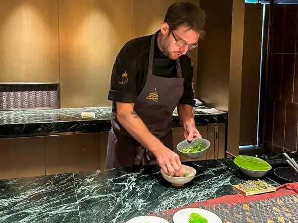 今回はバンコクから、【Bo.lan(ボー・ラン)】のオーナーシェフであるディラン・ジョーンズさんが来日して、ウエルカムフードをサーブしてくれました。