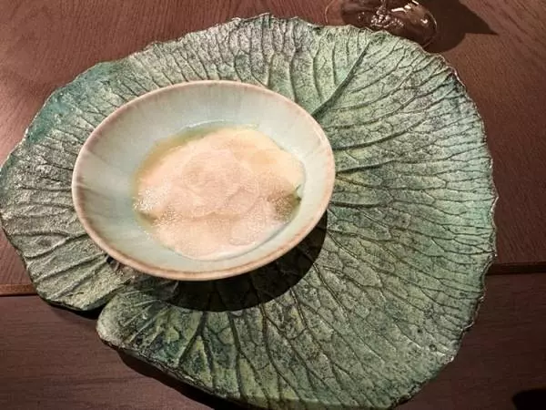 「季節ごとにアミューズは変わりますが、5という数字が意味を持ちます。それは5つの味(甘味、塩味、苦味、酸味、旨味)、食材の5つの色(緑、赤、黒、黄、白)、5つの調理法(焼く、燻す、蒸す、茹でる、生)です」との説明がありました。