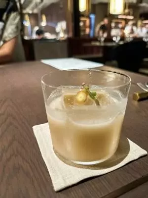 お酒ももちろんありますが、最初の3品にはスイカをベースにしたモクテル(ノンアルコール・カクテル)が合わせられ、4品、5品めにはそれぞれ別のものが用意されました。コクを出すために白みそが使われていたり、かなりユニークなものです。